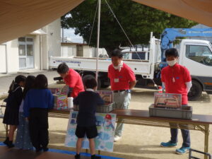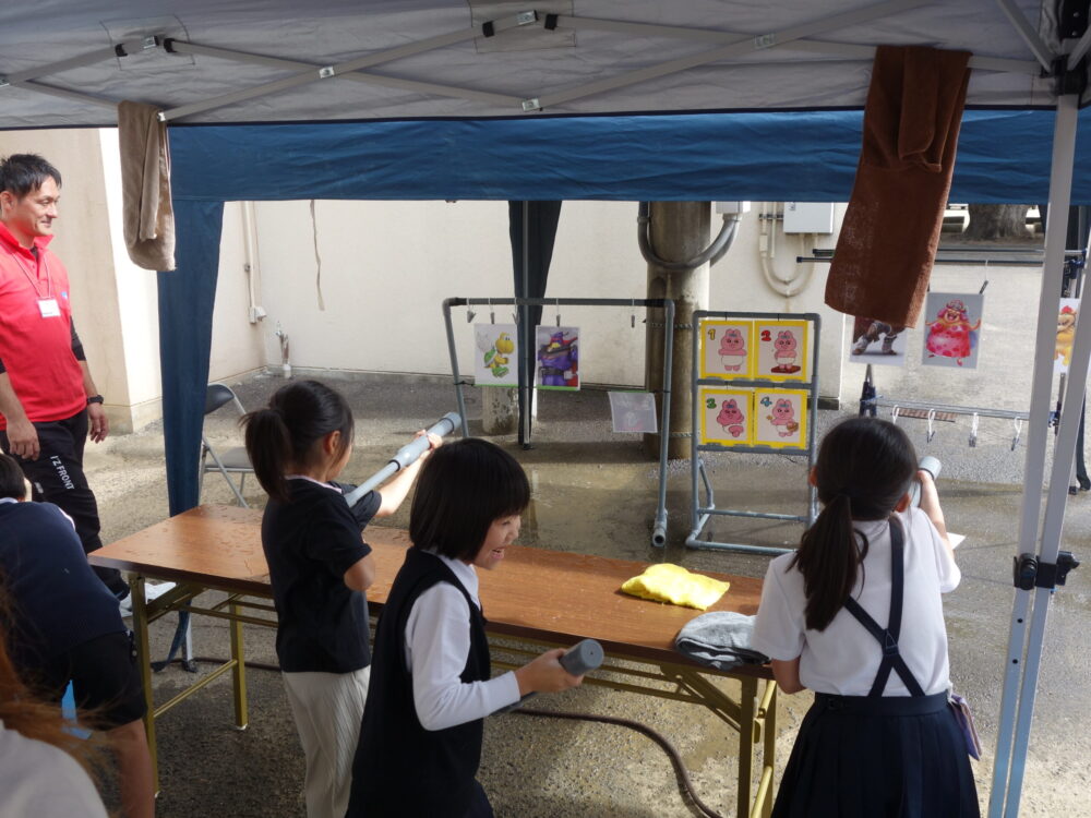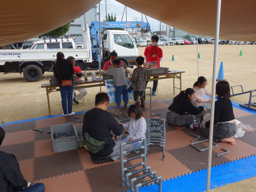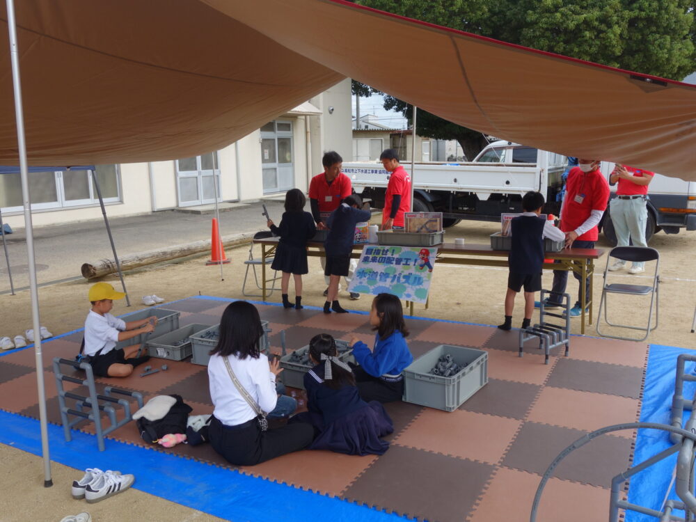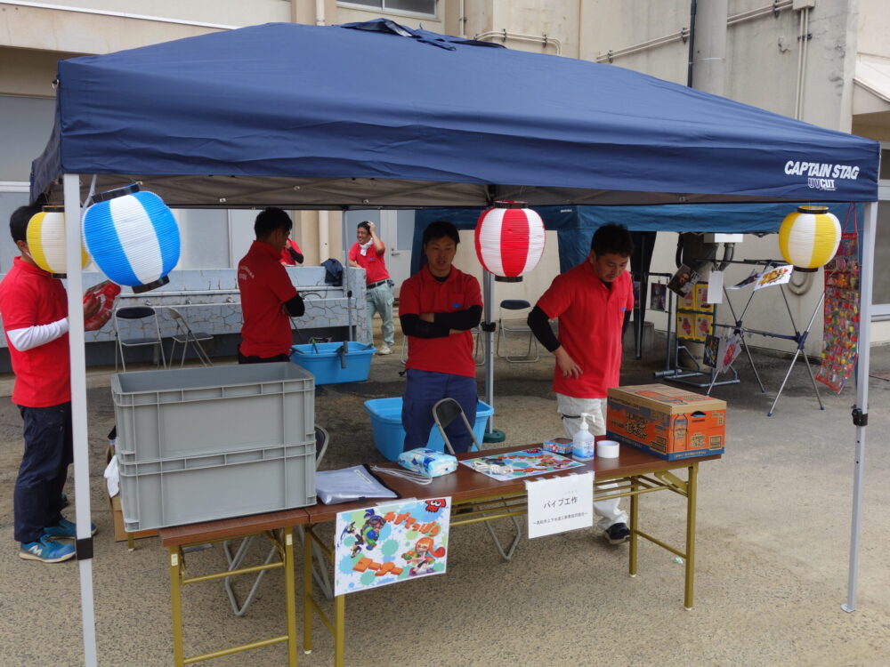 配管材料を使用した、パイプ工作・パズルコーナー・水鉄砲コーナーを設置し、地元の小学生や保護者の方々に体験してもらいました。